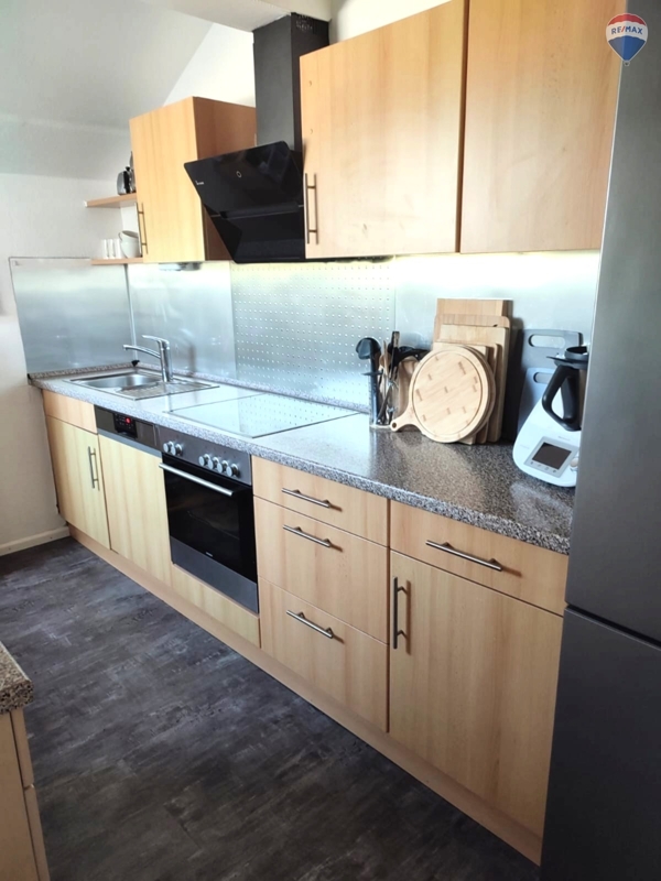 Beim Betreten der Wohnung empfängt Sie ein lichtdurchflutetes Wohnzimmer mit einem eleganten Laminatboden, der eine warme und einladende Atmosphäre schafft. Der offene Essbereich lädt zu geselligen Abenden ein. Die Küche ist direkt angrenzend und bietet viel Raum für Ihre kulinarischen Kreationen.