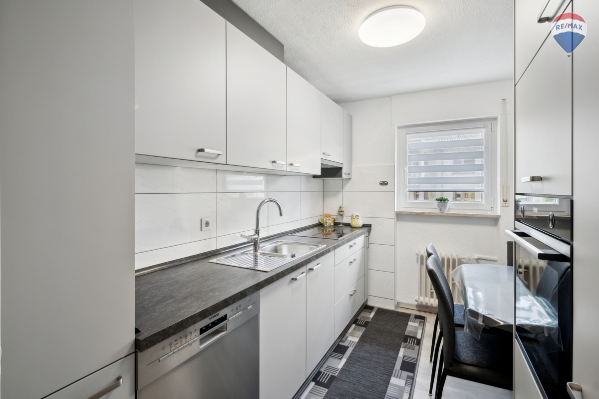 Hier bieten wir Ihnen eine helle und sehr gut geschnittene 3 Zimmer Wohnung, mit ca. 79,59 m² Wohnfläche in Öflingen an. Der Flur ist großzügig und hat einen Fliesenboden, zudem bietet er gleich links von der Eingangstüre aus gesehen eine kleine Abstellkammer mit Schiebetüre, da werden Sie diverse Utensilien und auch etwas Vorrat verstauen können, was bei einer Wohnung fast schon Gold wert ist. Weiter geht es vom Flur aus in alle weiteren Räume.Das Wohnzimmer hat eine Fläche von ca. 25,65 m² und durch die großen Fenster und der Balkontüre wirkt sie sehr freundlich, hell und bietet eine Aussicht in die Natur und dem Spielplatz im grünen, das sich im Innenhof befindet. Die Küche ist nach Maß angefertigt und kam erst vor ein paar Jahren neu hinzu. Elektrogeräte sind auf einem aktuellen Stand der Technik und diese wird in dem Preis mit verkauft. Ein Tisch mit 3 bis 4 Stühlen passen sehr gut rein und runden somit das Küchenzimmer perfekt ab.