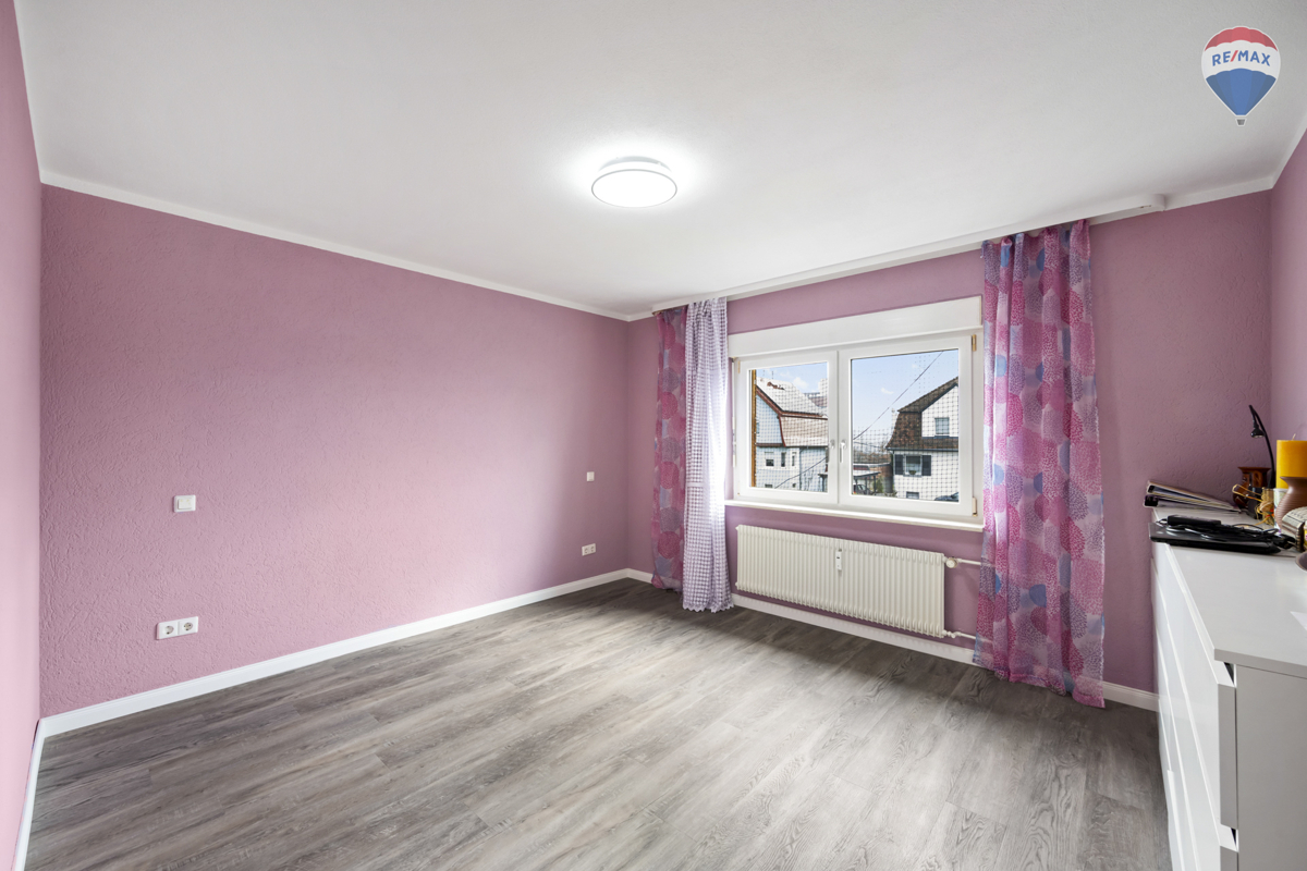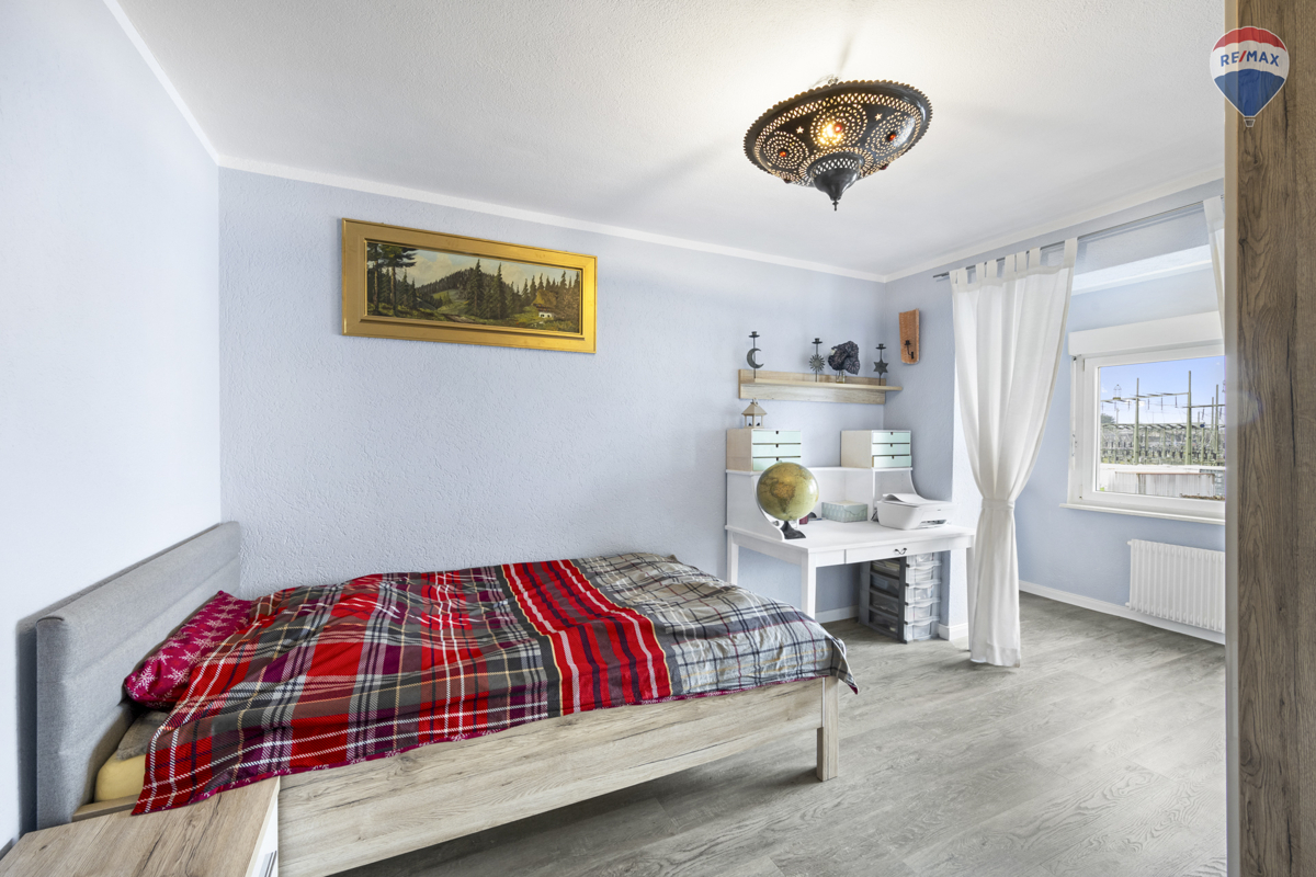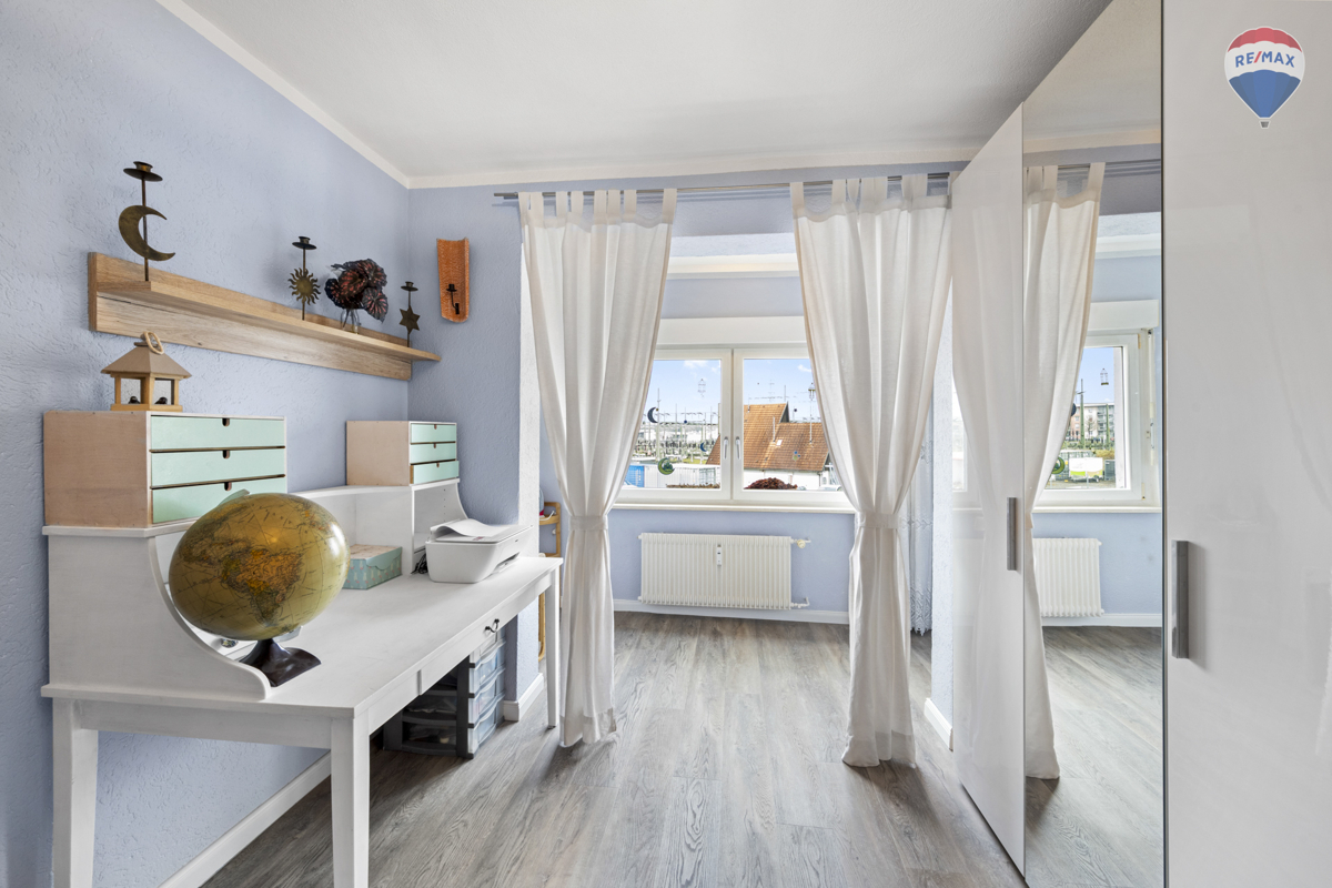 Gleich rechts befindet sich das Schöne Kinderzimmer mit dem ausgebauten Balkon.