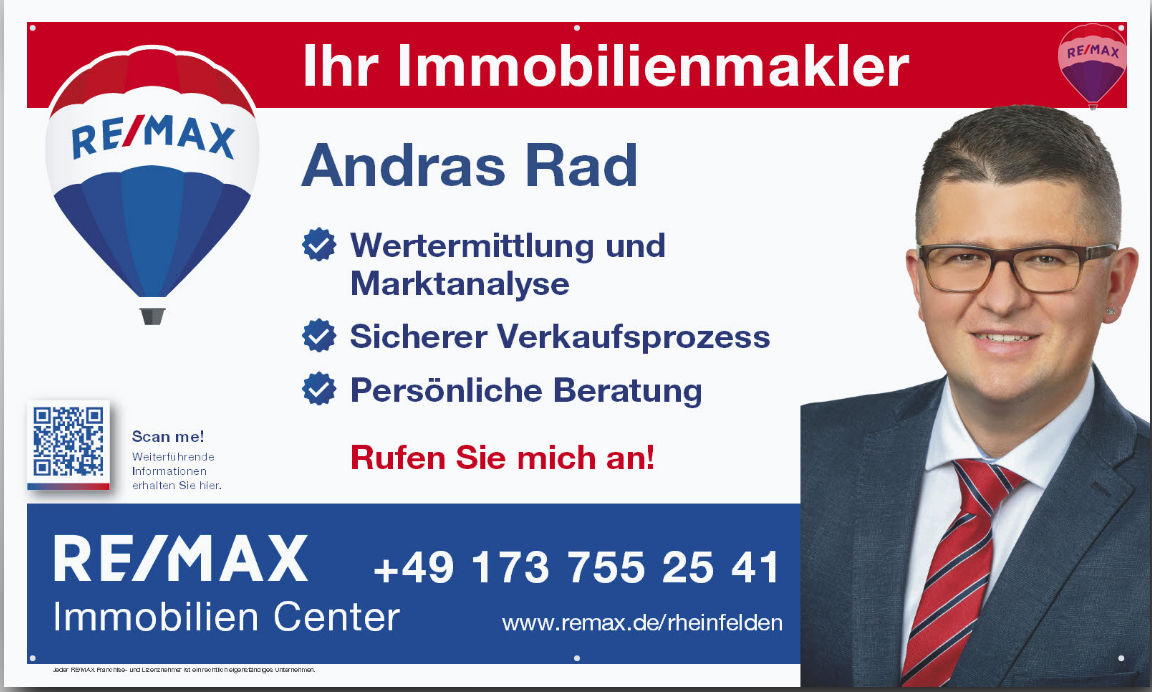 Die Wohnung befindet sich in die Nähe zu der Innenstadt Rheinfelden (ca. 12 Gehminuten) und ermöglicht somit innerhalb kürzester Zeit das Erreichen zahlreicher Einkaufsmöglichkeiten, Schulen, Ärzten und vielem mehr. Autobahnauffahrt ca. 4 min. Die nächste Bushaltestelle befindet sich ca. 50 Meter von der Wohnung entfernt.Durch die Lage im äußersten Südwesten Deutschlands sind sowohl die Schweiz als auch Frankreich in wenigen Minuten zu erreichen. Lediglich der Rhein trennt das Rheinfelden in der Schweiz von dem in Deutschland