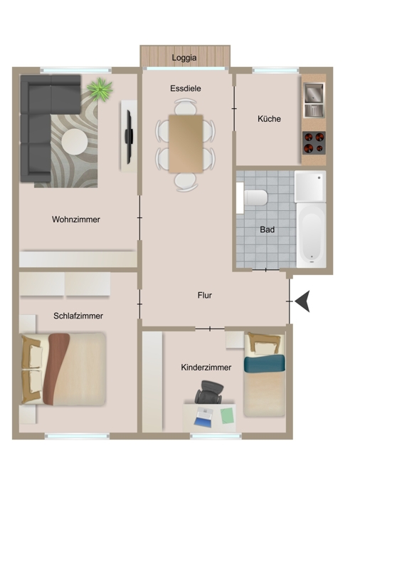 3- bis 4-Zimmer-Wohnung mit Loggia & Blick ins Grüne, in gepflegte Wohnanlage mit Spielplatz und Kindergarten in Rheinfelden-Herten zu verkaufen.Zum Verkauf steht eine helle und gut geschnittene Wohnung im 3. OG eines gepflegten 8-Parteienhauses, Baujahr 1975 (laut Teilungserklärung), in Rheinfelden-Herten. Die Wohnfläche beträgt ca. 80 m² und verteilt sich auf 3 Zimmer, eine Essdiele (auch als Wohn-, Arbeits- oder Spielbereich nutzbar), Küche, Bad mit Wanne und Dusche und WC sowie eine große Loggia mit Blick ins Grüne.