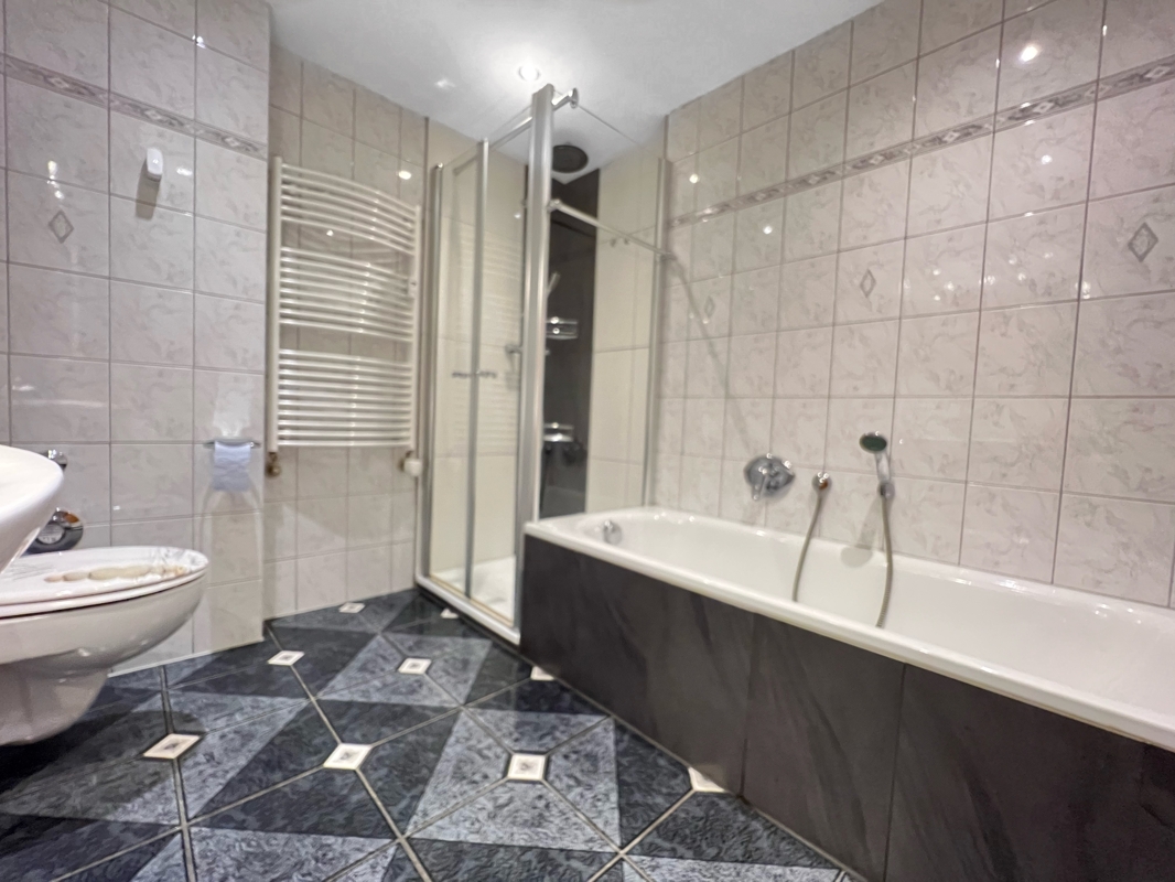 -Sehr gepflegte Badezimmer mit Badewanne und Dusche