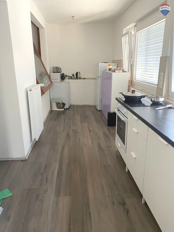 Im 1. OG befindet sich eine sehr schöne 3,5 Zimmer Wohnung mit einer Größe von ca. 103 m². Das Küchenzimmer bietet eine neuwertige Einbauküche sowie auch das Badezimmer.
