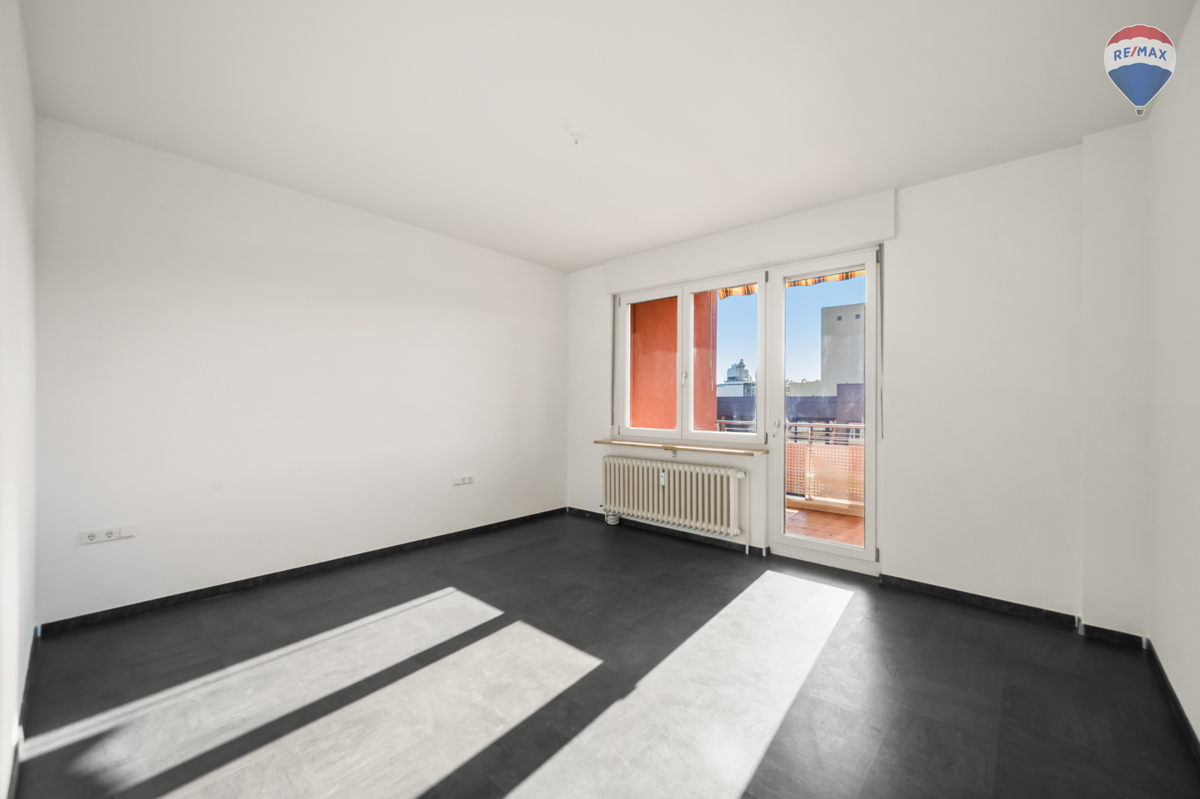 Das lichtdurchflutete Wohnzimmer mit Zugang zum sonnigen Balkon bietet Raum für Entspannung und gemeinsame Momente. Zwei freundliche Schlafzimmer schaffen Rückzugsorte für Familie, Homeoffice oder Gäste